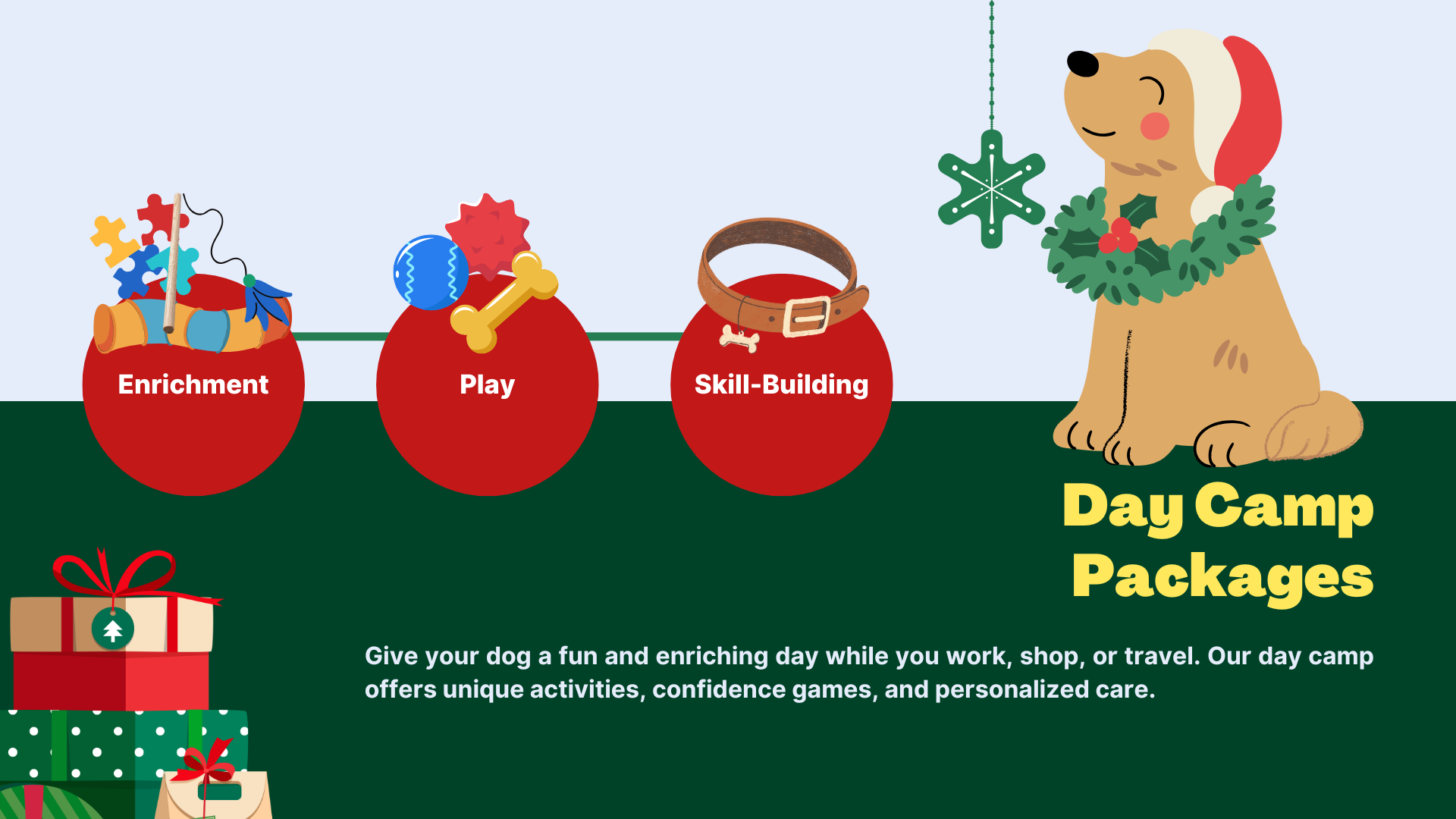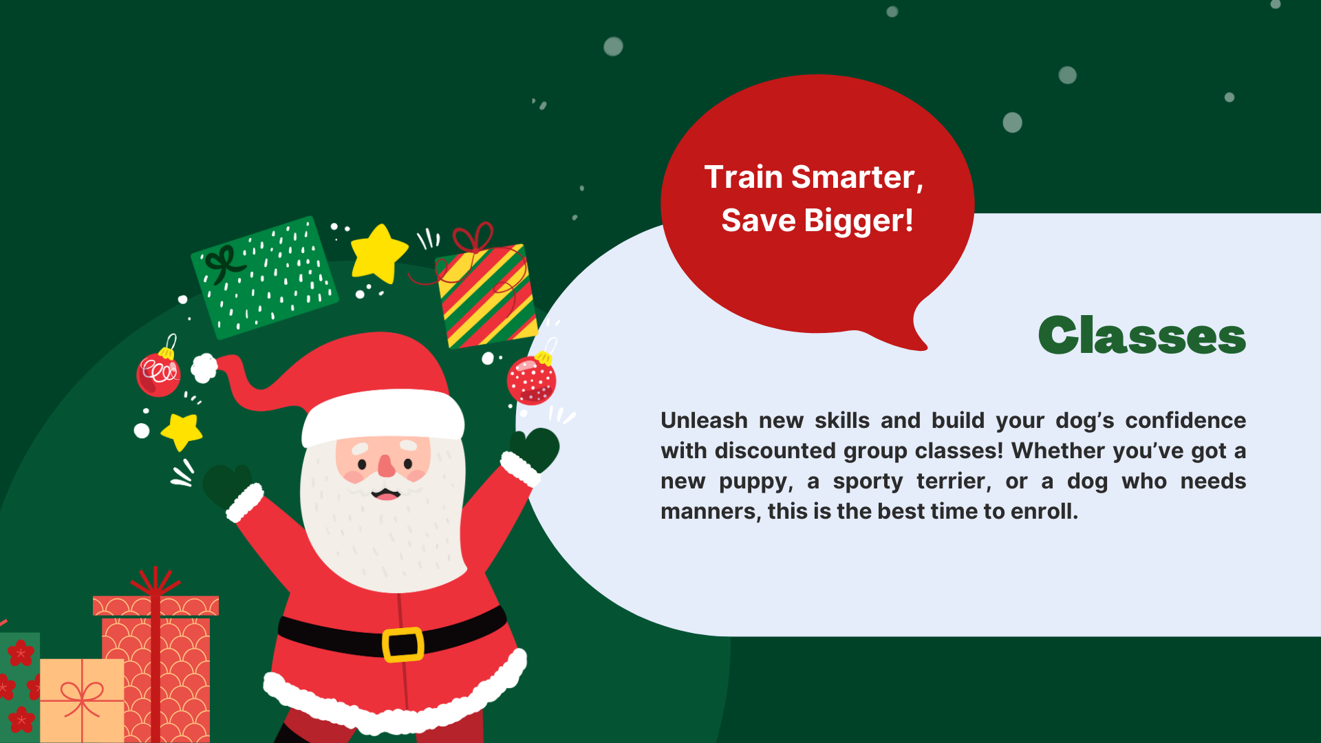 These special packages are only available during the holiday event β itβs the perfect time to invest in your dogβs training journey and set them up for an amazing new year.